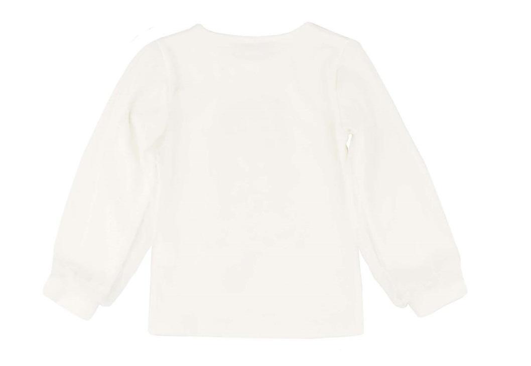 Majica je izdelana iz 95% viskoze in 5% elastana ter izstopa s svojo robustno vendar elastično strukturo. Zaradi strukture tkanine je zelo udobna za nošnjo. Majica je kreirana za deklice v starosti od 2 do 6 let in je na voljo v vedno elegantni beli barvi. Poleg lepega tiska deklice s kužkom je majica okrašena tudi z bunkicami/kristalčki.