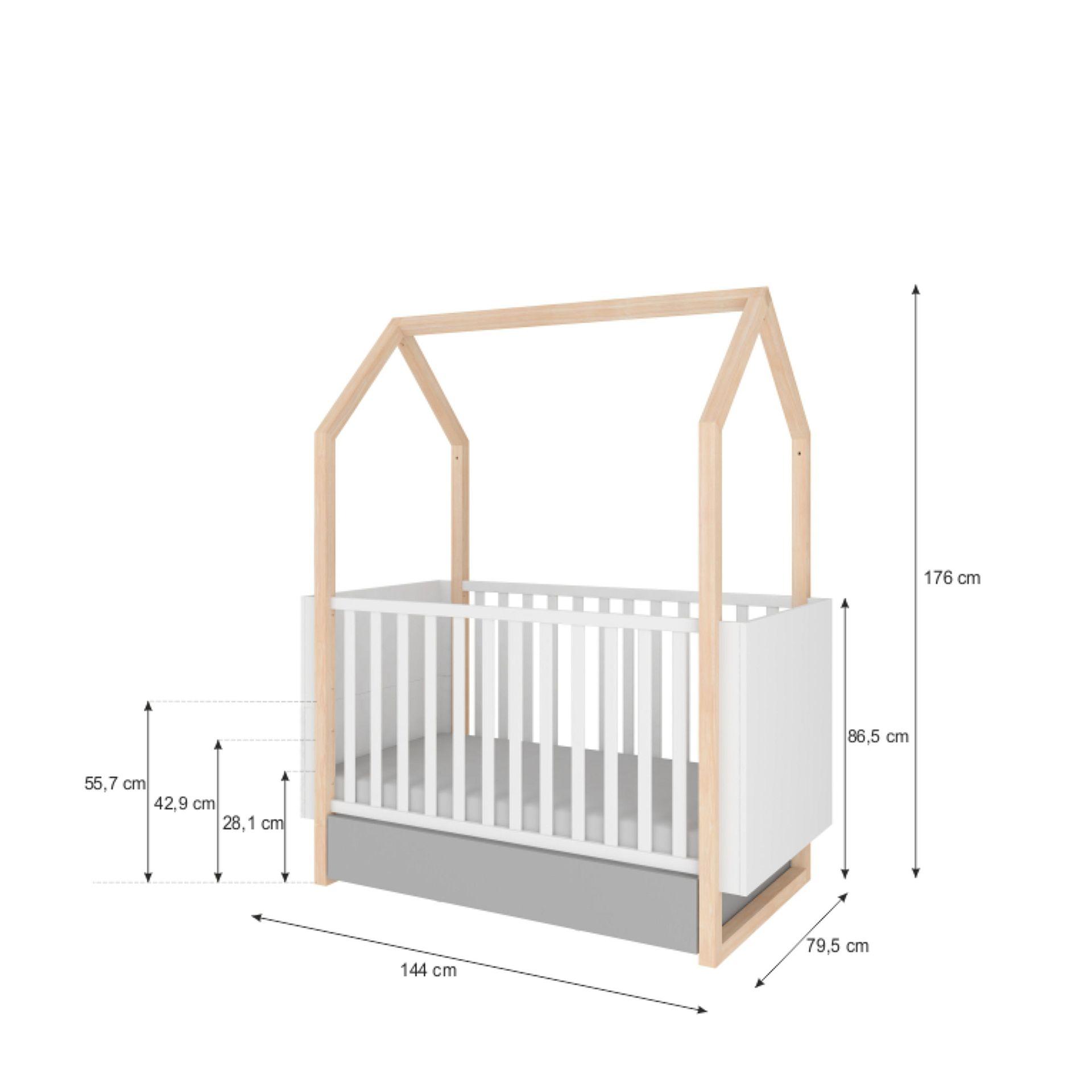 – tri ravni položaja vzmetnice, prilagojene stopnji otrokovega razvoja (55,6 / 42,8 / 25,2 cm od tal)